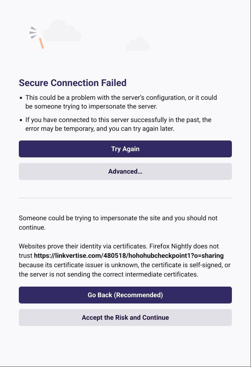 It blocked the site it said Firefox doesn't trust site even though I know there's nothing wrong because I have used it before.