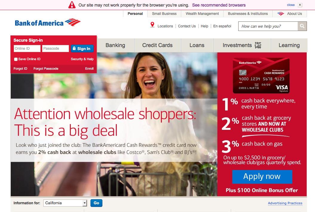The latest version of Firefox is being detected as not up to date on The Bank of America website.