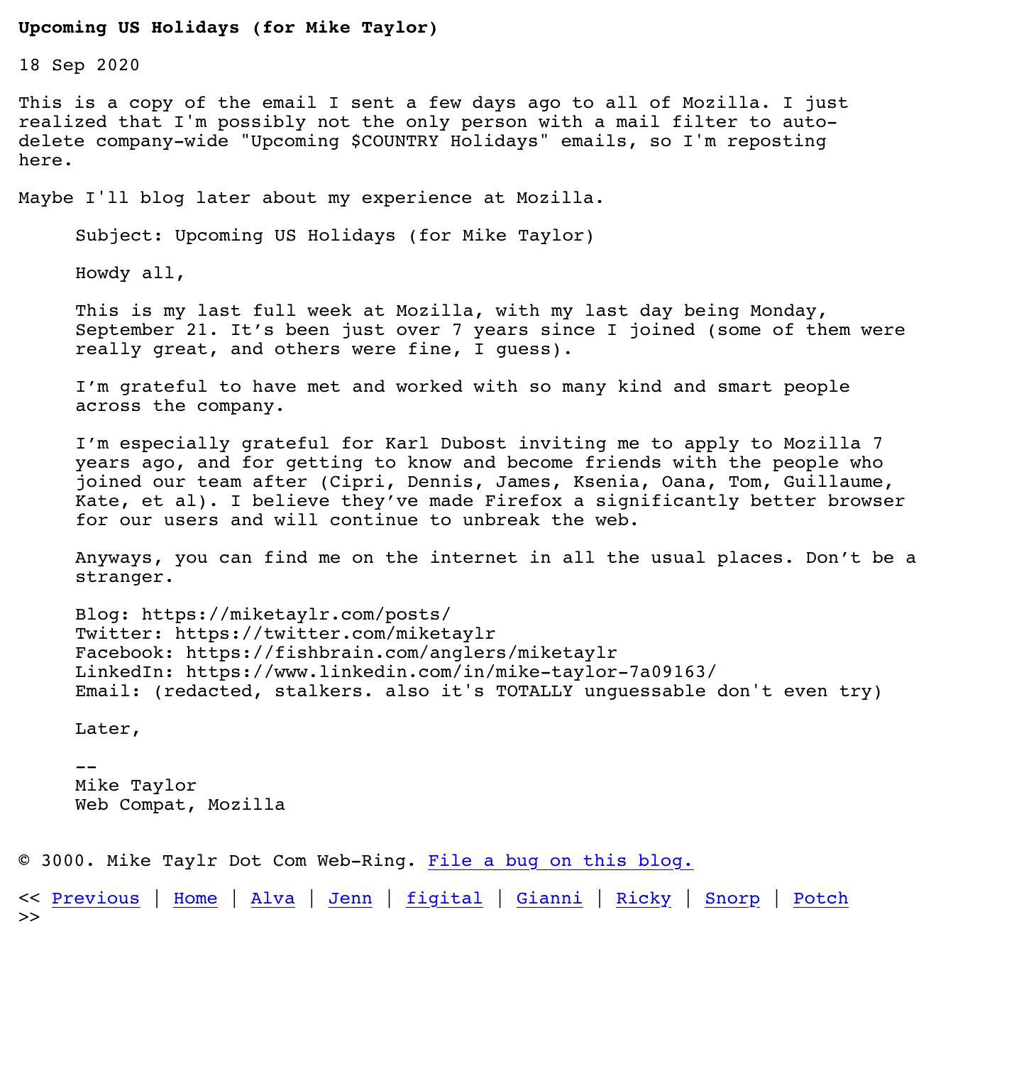 URL: https://miketaylr.com/posts/2020/09/upcoming-us-holidays-for-mike-taylor.html