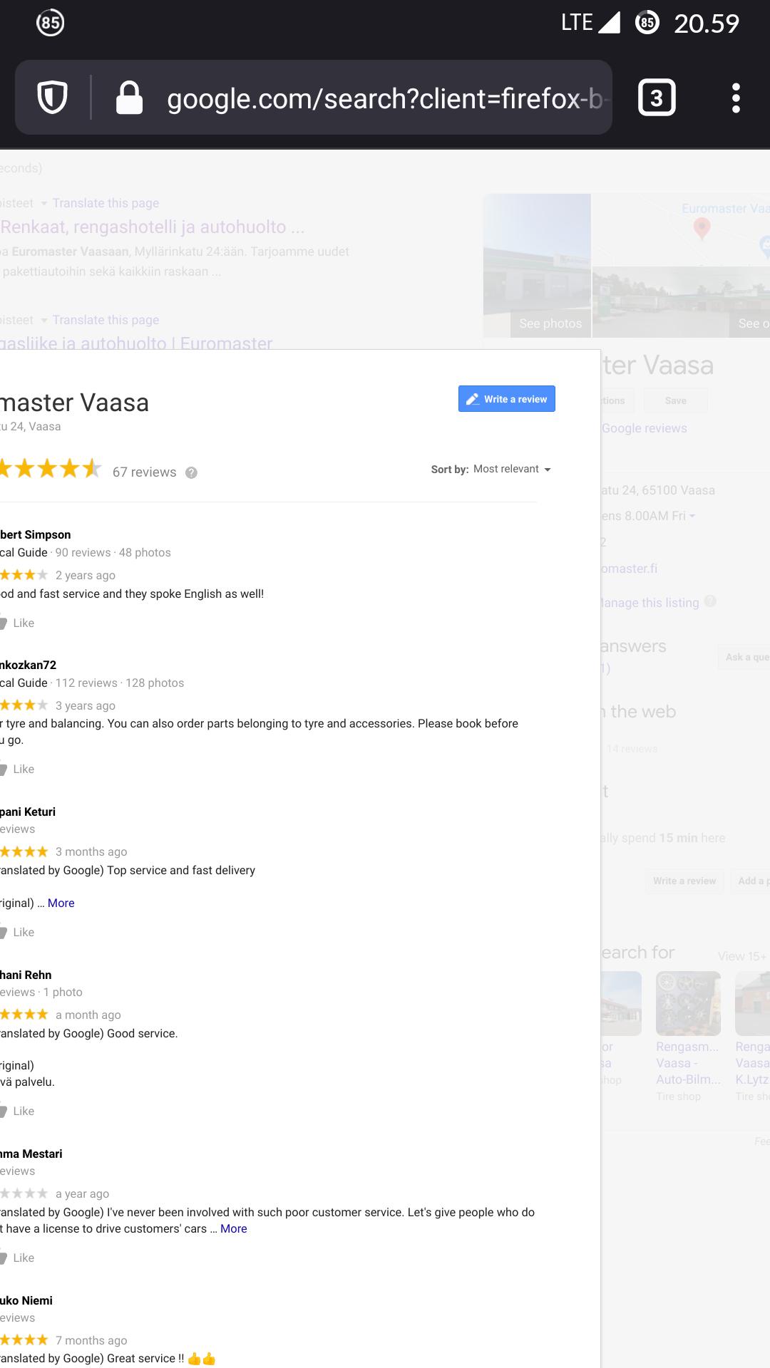 Not possible to read Google reviews about a local car tyre shop in desktop mode because when you open the reviews you cannot scroll the page anymore.