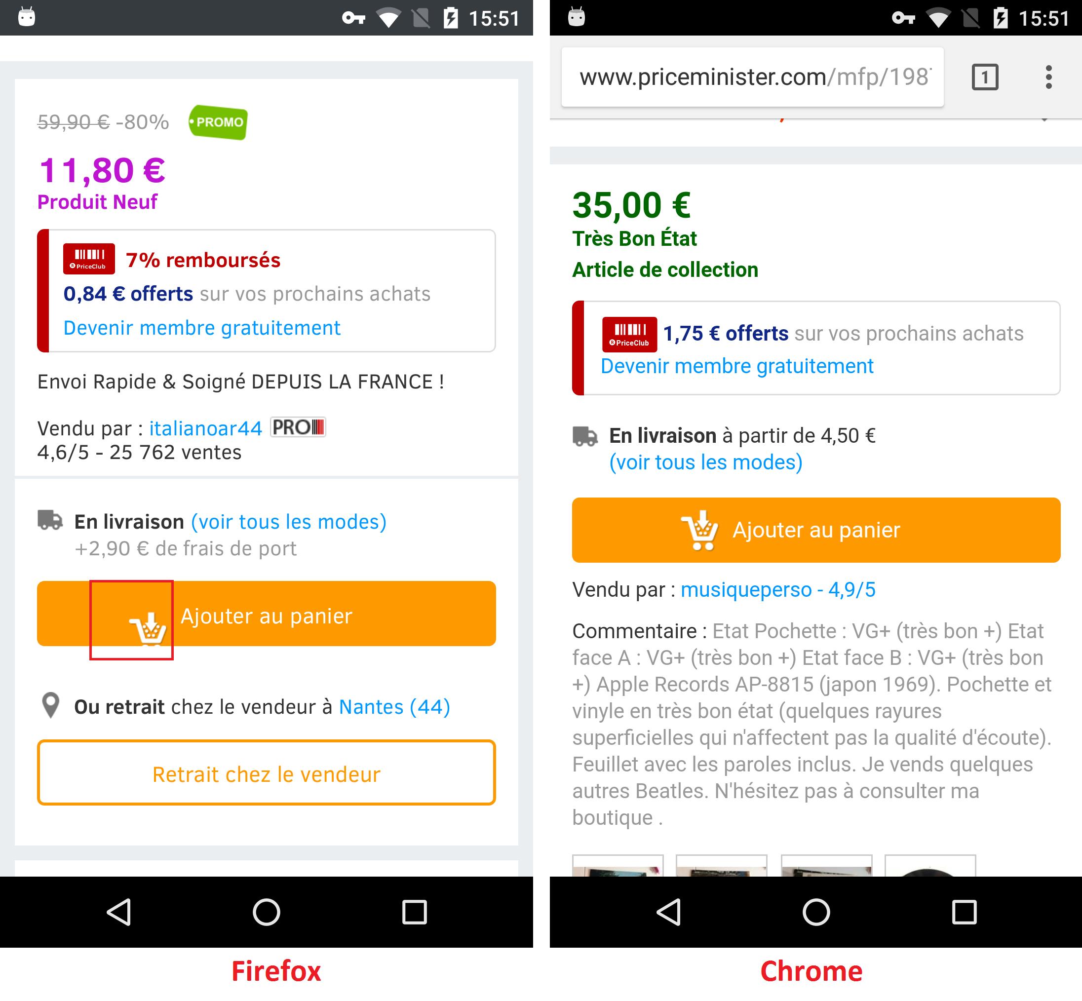 URL: http://www.priceminister.com/offer/buy/674819595/ecran-complet-pour-iphone-5c-noir-vitre-tactile-ecran-lcd-sur-chassis-outils.html?rtg=431479671ab02be8a29218cbe4b674cf Browser / Version: Firefox Mobile Nightly 55.0a1 (2017-05-19) Operating System: Nexus 5 (Android 6.0.1) - Resolution 1080 x 1920 pixels (~445 ppi pixel density) Problem type: Something else - I'll add details below Steps to Reproduce Navigate to: http://www.priceminister.com/offer/buy/674819595/ecran-complet-pour-iphone-5c-noir-vitre-tactile-ecran-lcd-sur-chassis-outils.html?rtg=431479671ab02be8a29218cbe4b674cf Observe “Ajounter au panier” (“Add to cart”) button. Expected Behavior: “Cart” icon is fully visible. Actual Behavior: “Cart” icon is cropped. Note: Reproducible on Firefox 53.0.2 Release Not reproducible on Chrome (Mobile) 58.0.3029.83. Screenshot attached. Watchers: @softvision-sergiulogigan @softvision-oana-arbuzov sv; country: fr From webcompat.com with ❤️ Please login to edit issues. View issue on Github Shortcut: Press l on your keyboard to open the label editor. Shortcut: Press g on your keyboard to be taken to the GitHub view of this page.