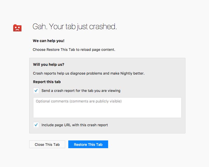 When I open Google Maps in Firefox Nightly, the site loads initially and, then, after a second or two, it crashes. I submitted a crash report through the browser too and attempted to restore the tab. Same result.