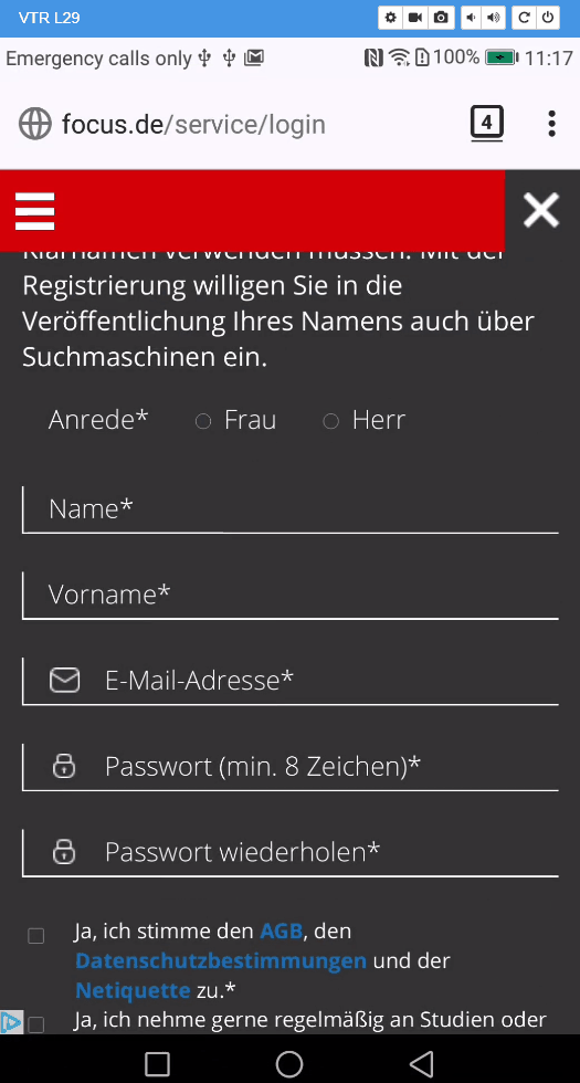 - Select any of the radio buttons from “Anrede” (“Form of address”).